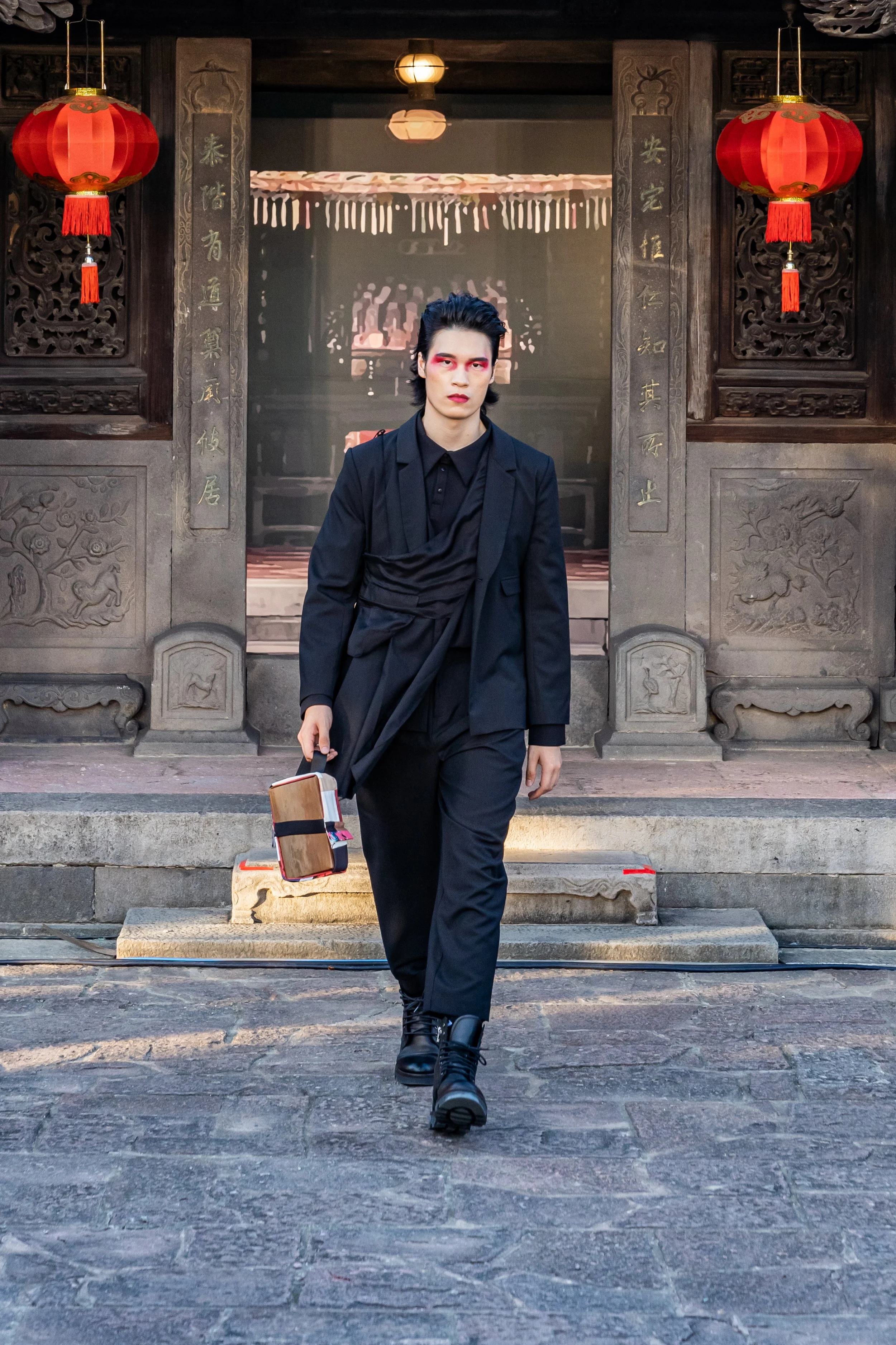 In addition to showing local beliefs and culture and early customs in Taiwan through fashion, this season also uses the painting technique of "Trompe L'oeil", which turns 2D into 3D. We constantly observe the changes in light and shadow of daily fashion, and transform them into different shades of color blocks to imitate the light and shadow and details in the characters of “Grand Mother & Her Ghost”, and apply them to create a print on the garment, make you look like a come-to-life animation character when you put on the whole outfit.