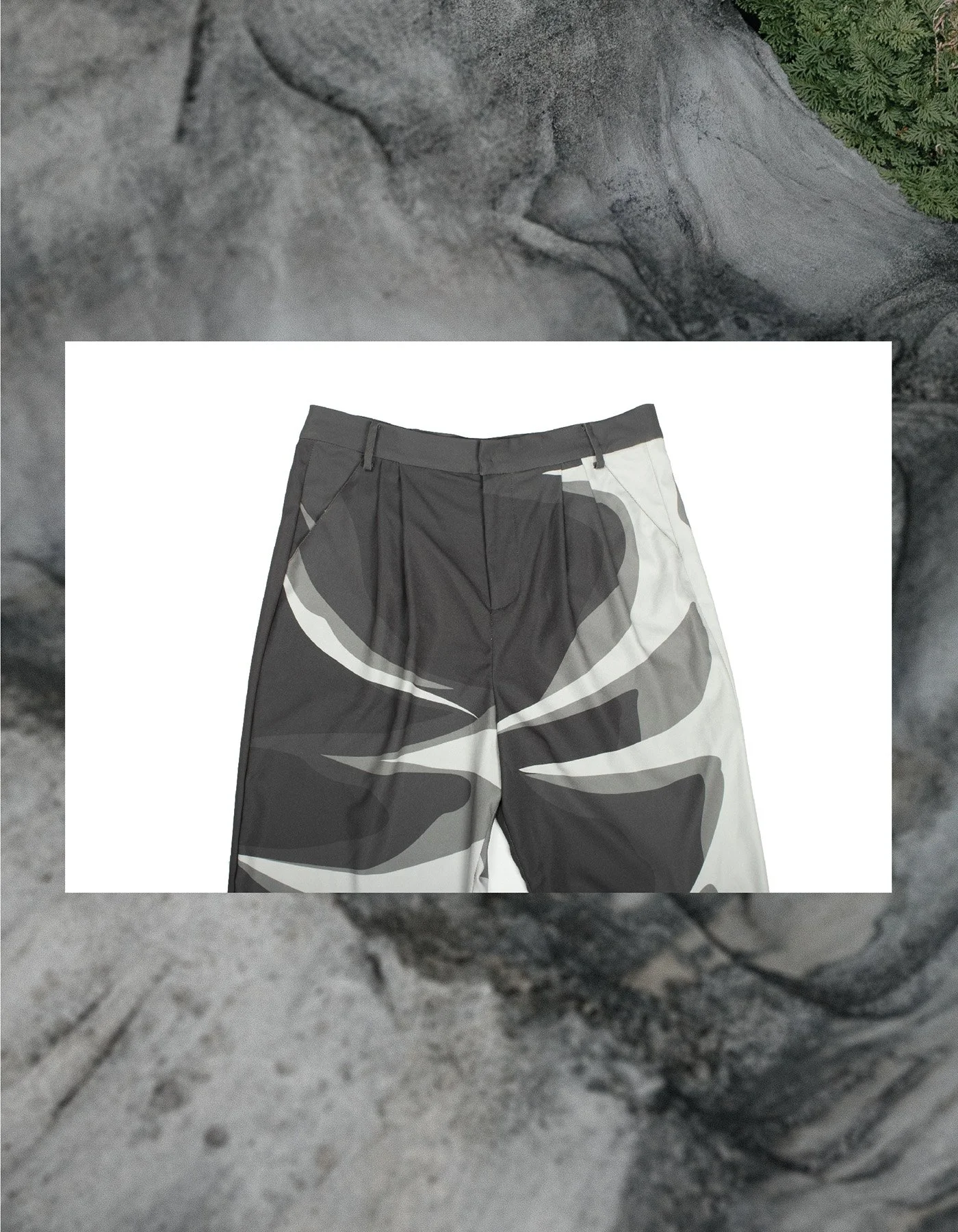 The cutting of this trouser is the final outcome of deforming and reshaping a formal suit trousers together with a casual pants. The position and width of the pleats on the trousers are established after many experiments and continuous refitting,, so that the wearer can style it in the best ratio and fit. Matched with our meticulous sewing of the trousers, the ingenious curve is drawn into the trousers at a slight angle which makes the front look more three-dimensional and stylish. The two pleats on the back of the trousers can also modify the hip lines. No matter whether it is worn by males or females, it can achieve the effect of increasing height and slimness. In addition to wearing the trousers with a suit jacket, it is also recommended that you can slightly use the stitches below the bottom of the trousers as a benchmark, and roll up two or three folds to present a more casual and Yuppie style