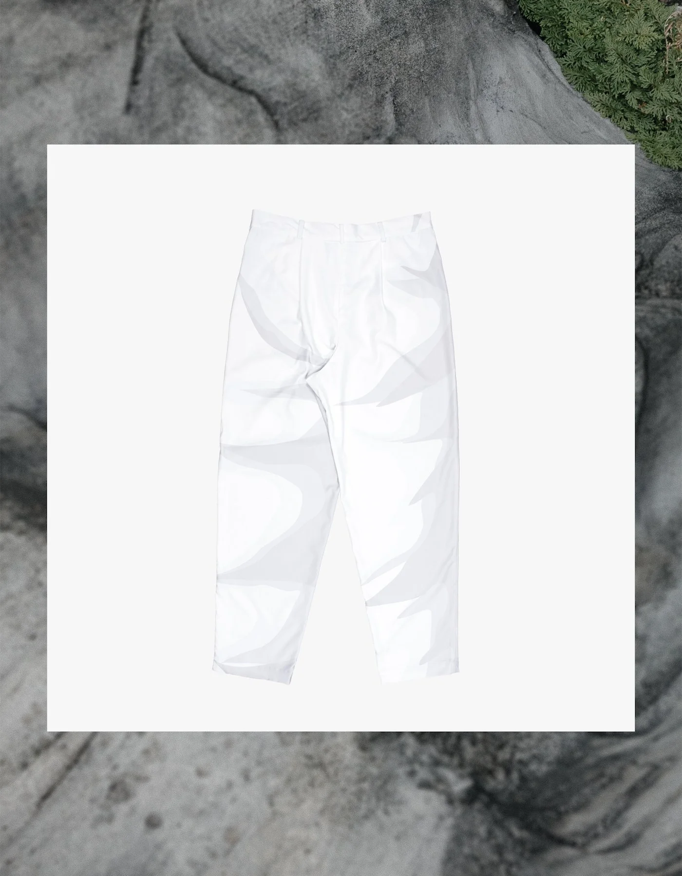 The cutting of this trouser is the final outcome of deforming and reshaping a formal suit trousers together with a casual pants. The position and width of the pleats on the trousers are established after many experiments and continuous refitting,, so that the wearer can style it in the best ratio and fit. Matched with our meticulous sewing of the trousers, the ingenious curve is drawn into the trousers at a slight angle which makes the front look more three-dimensional and stylish. The two pleats on the back of the trousers can also modify the hip lines. No matter whether it is worn by males or females, it can achieve the effect of increasing height and slimness. In addition to wearing the trousers with a suit jacket, it is also recommended that you can slightly use the stitches below the bottom of the trousers as a benchmark, and roll up two or three folds to present a more casual and Yuppie style