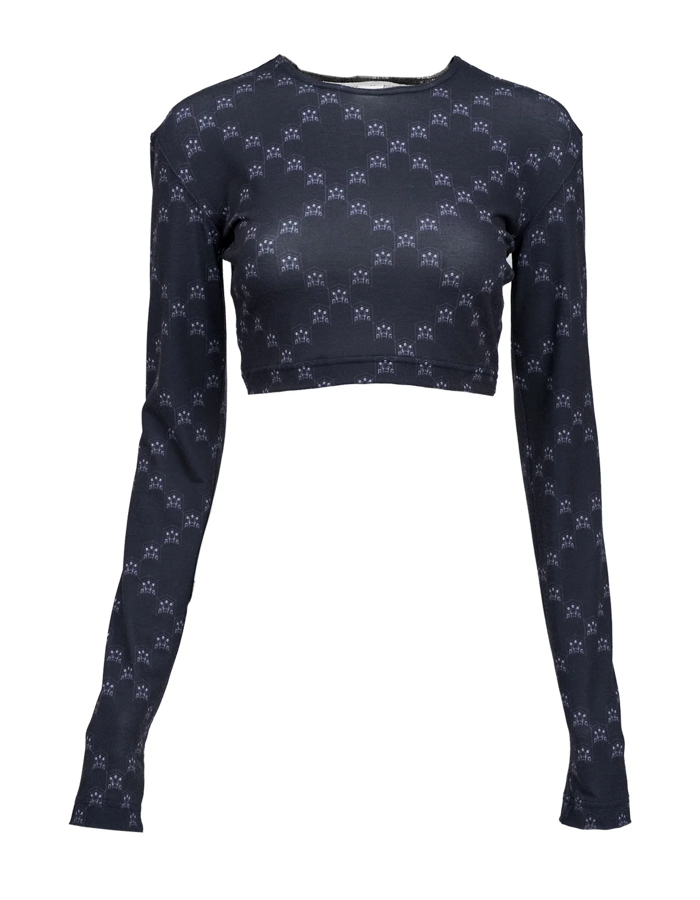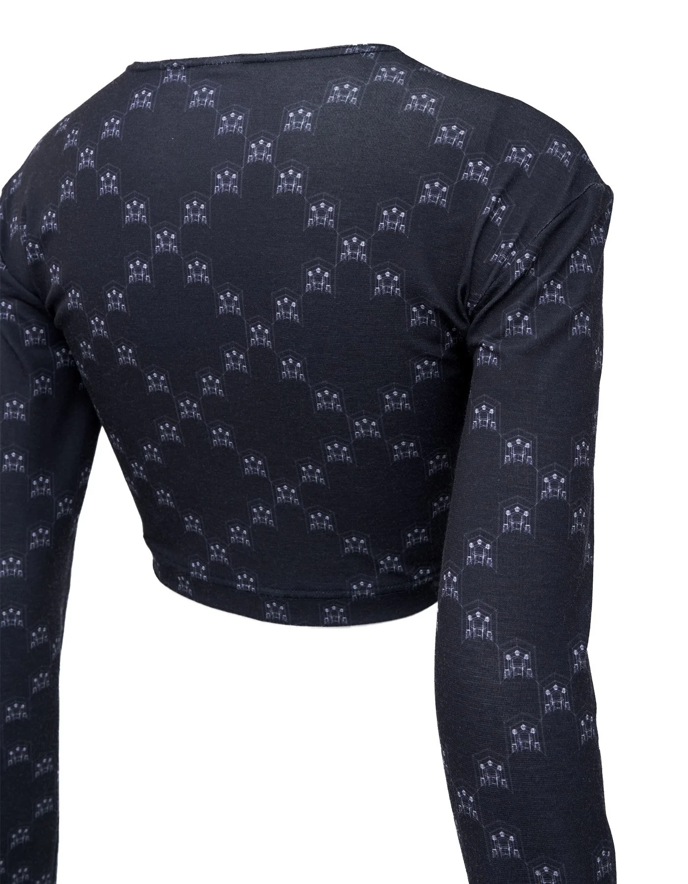 This cropped top features a fitted silhouette with long sleeves, crafted from stretchy and breathable fabric for enhanced comfort. The clean-cut design complements the season's print, making it a versatile piece that pairs well with both skirts and pants outfits.