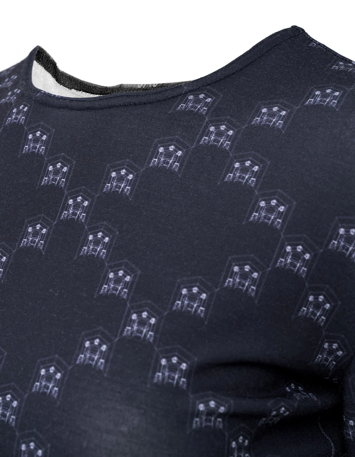 This season's print draws inspiration from traditional elements of early Ban-Doh, seamlessly blending images of large round tables, red plastic chairs, lanterns, and shelving. Deconstructed and artfully combined, the dot-matrix arrangement results in a fashionably refined classic style. The floral colors include INF's signature dark hues, incorporating traditional colors from the eggplant-shaped bags, such as red, green, and blue, creating a unique impression that blends modernity with tradition.