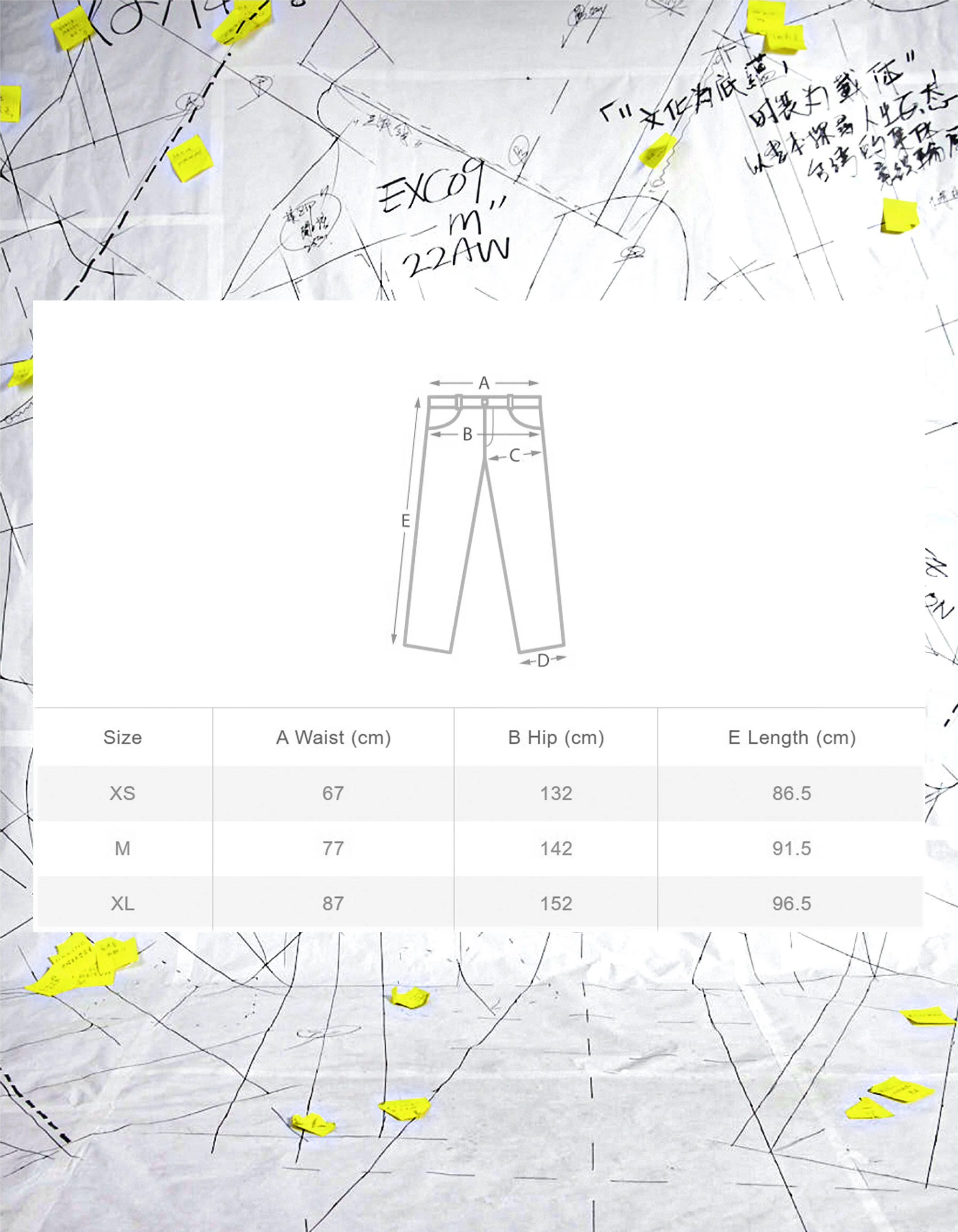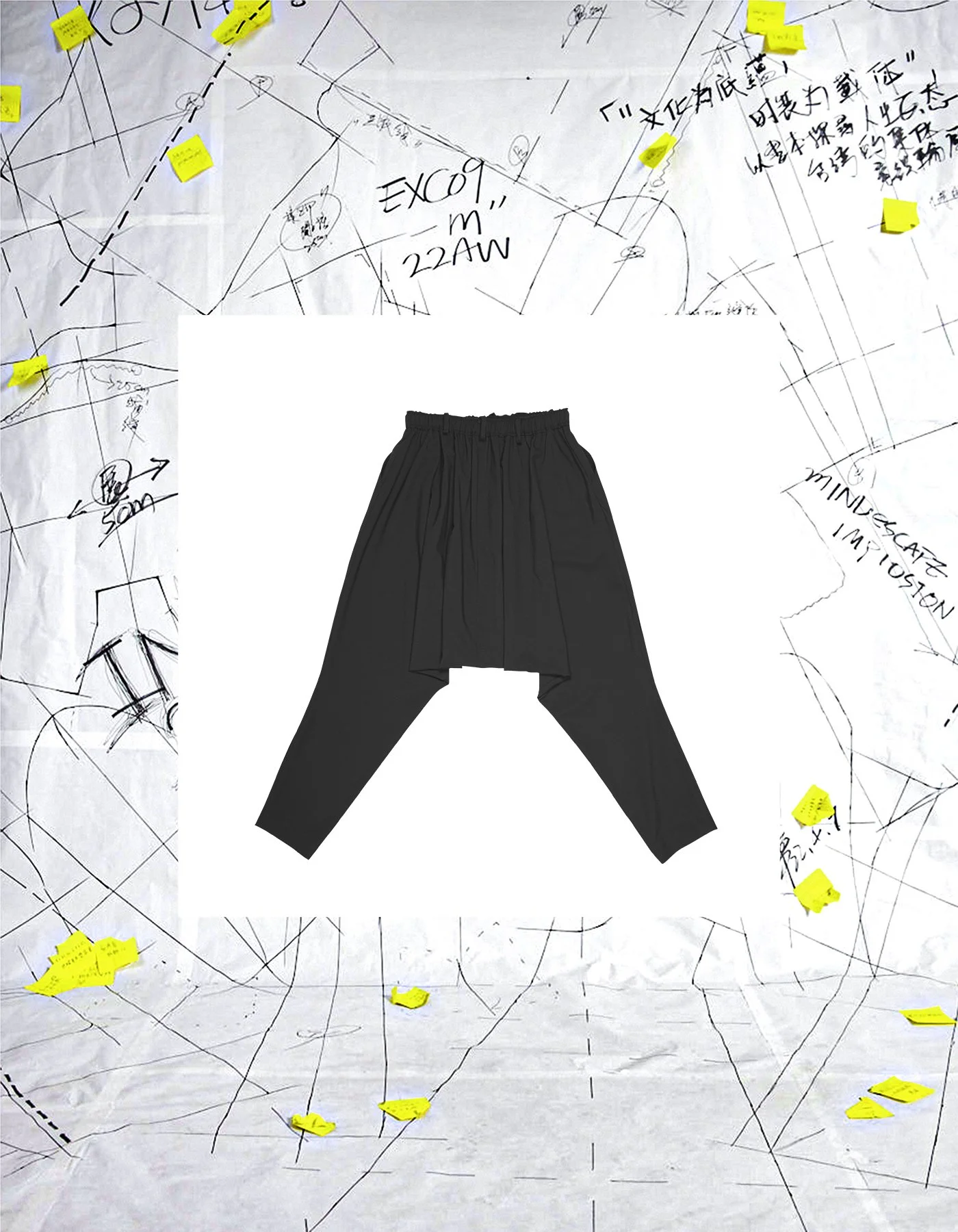 The details of the pattern are based on slim-cut low-crotch pants, which gradually narrow from the thigh to the knee then the calf, so that the cut line can still maintain the slender visual effect after wearing; the whole pants are from left to right, from regular pleats to the design of random pleats due to the body shape; in addition to apply the multi-layer visual effect, the orientation of the pleats is also changed to inward folds, so that the overall shape has the Japanese style. The right pocket adds for practical function. It is suitable for pairing with boots or folded trousers with leather shoes.