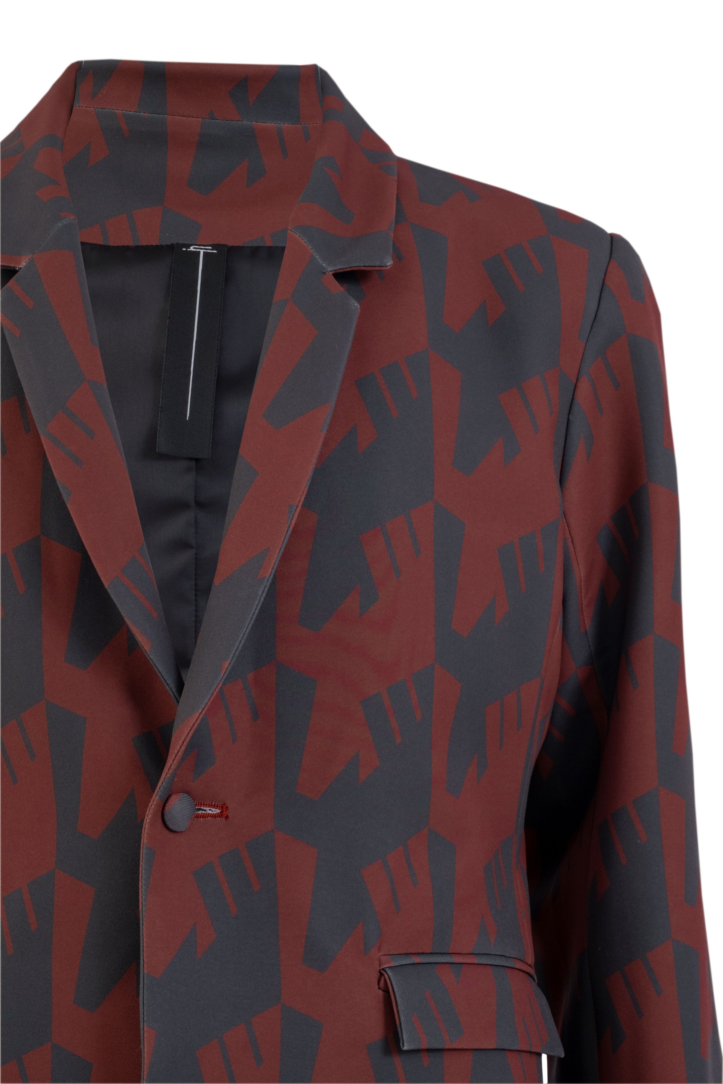 The collection cleverly fuses indigenous totems with modern design elements: the designer deconstructs and reconstructs the classic houndstooth pattern, incorporating the raven’s flying posture and wing structure into geometric units to capture the motion of wings and create a wholly new print language. In terms of color, olive green represents secrecy and depth, blazing red pays homage to the myth of the raven’s creation, and quiet gray reflects the tranquil interplay of time and memory. As the prints move with the model’s steps, they evoke the sensation of raven wings soaring across the body, presenting a dynamic and mysterious aesthetic.
