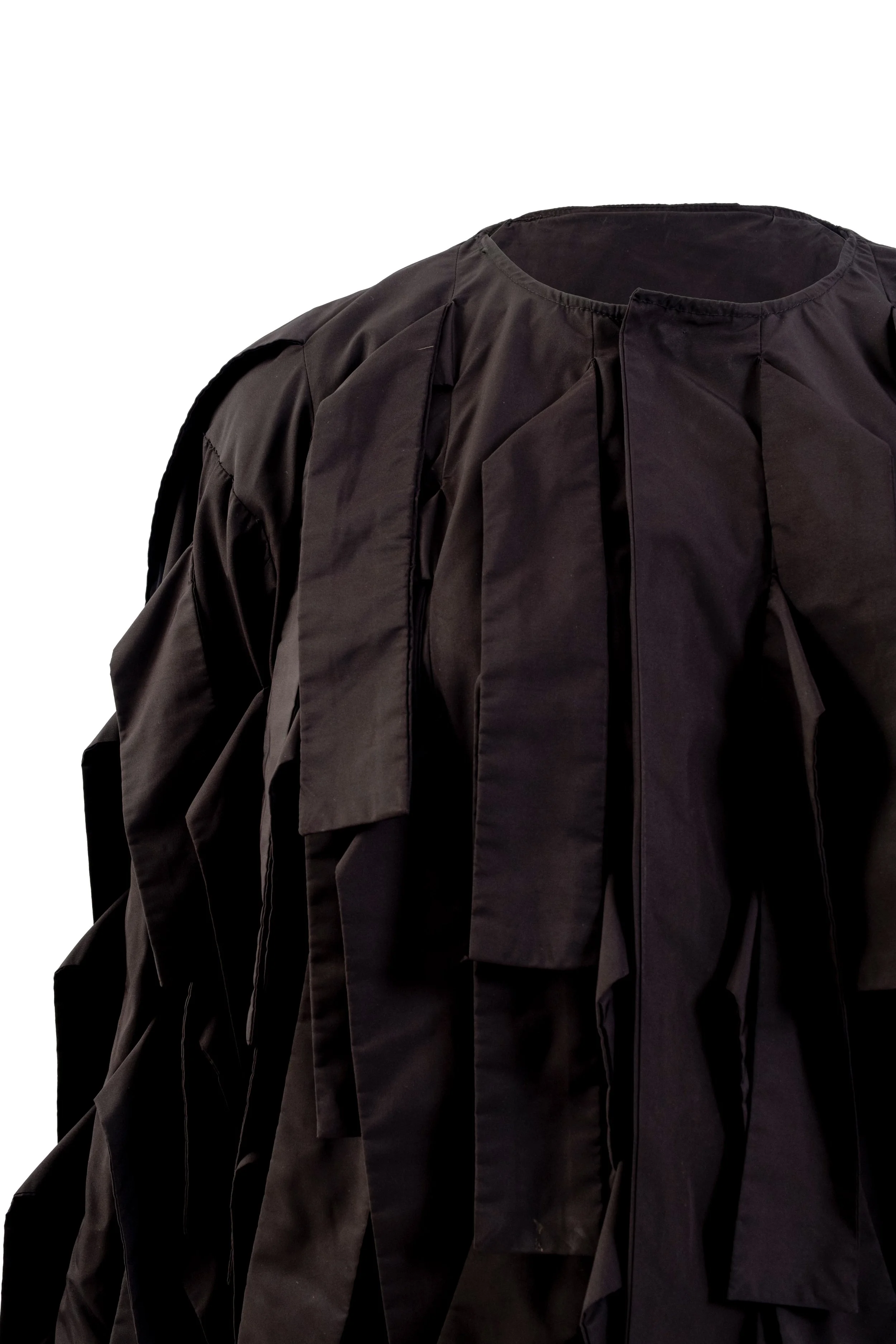 The "RAVEN" collection is inspired by the mythological raven—a mysterious creature that embodies wisdom, darkness, and the unknown across various cultures. Designer Kuo Wei explores the role of the raven in Taiwanese Rukai, Nordic, and Greek mythology, and reinterprets its imagery in this season’s collection. From the flow of feathers and skeletal structure to the moment of wings spreading, every detail carries deep cultural significance, guiding the viewer into a fashion dialogue woven with intelligence and mystery.