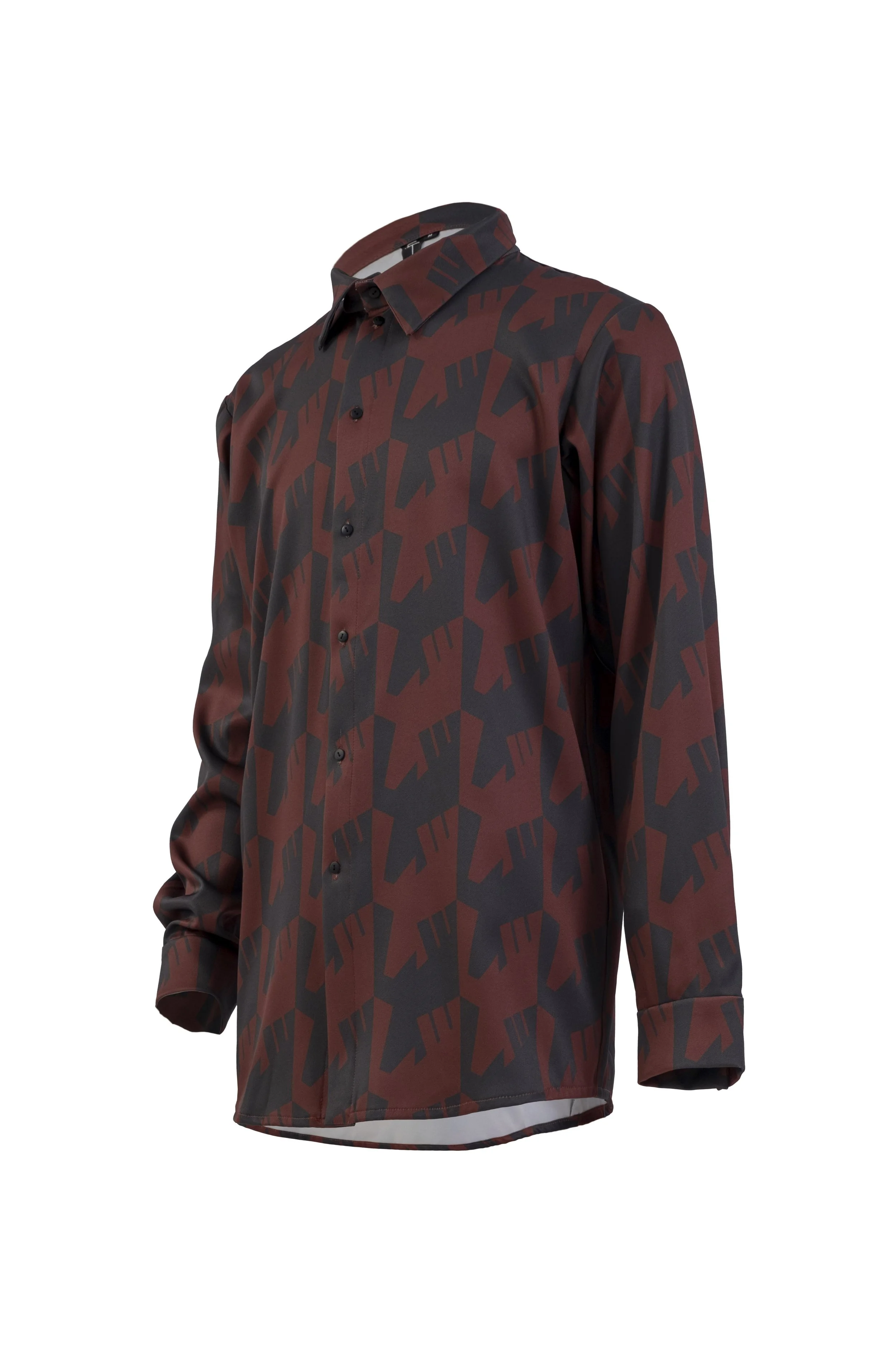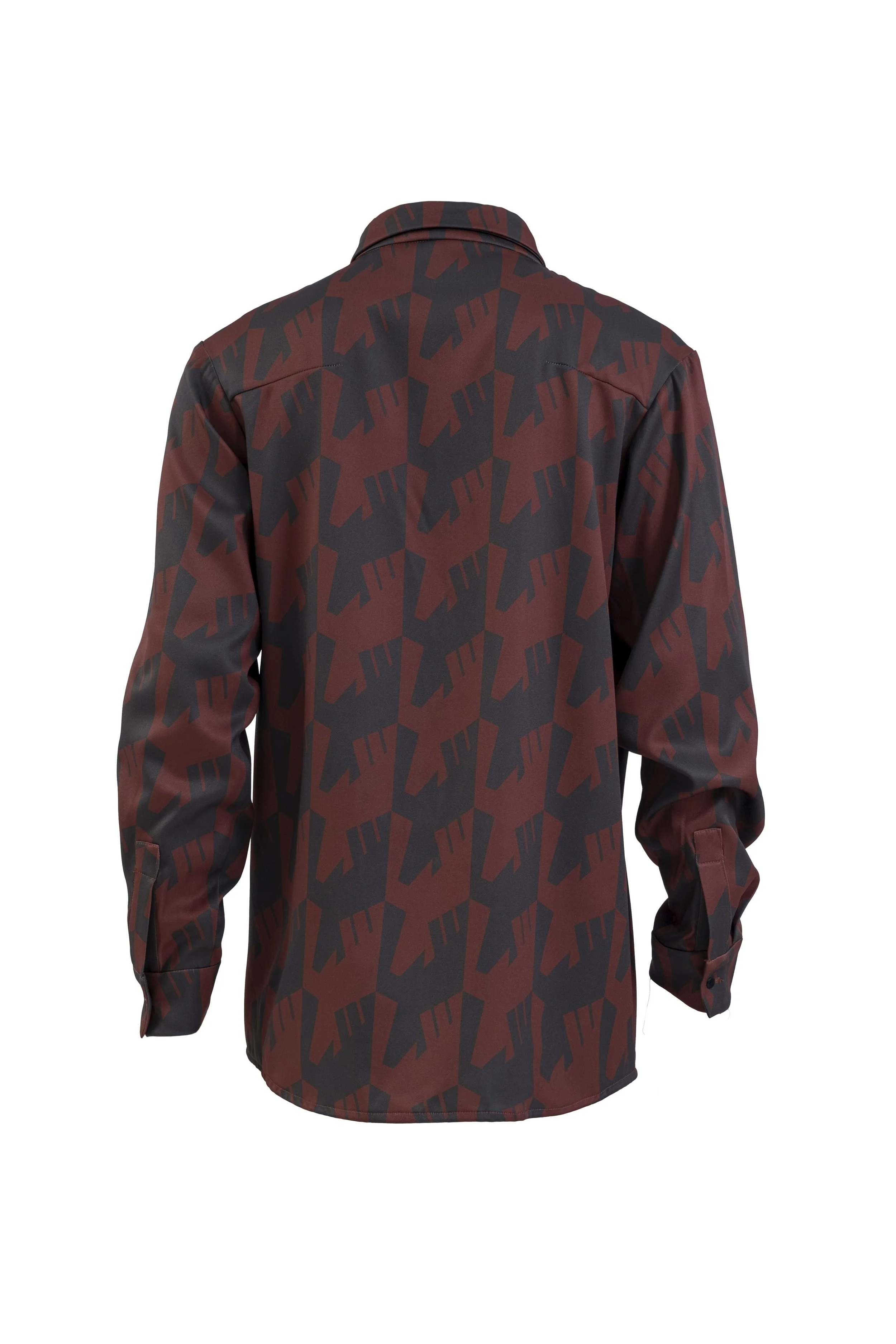 The collection cleverly fuses indigenous totems with modern design elements: the designer deconstructs and reconstructs the classic houndstooth pattern, incorporating the raven’s flying posture and wing structure into geometric units to capture the motion of wings and create a wholly new print language. In terms of color, olive green represents secrecy and depth, blazing red pays homage to the myth of the raven’s creation, and quiet gray reflects the tranquil interplay of time and memory. As the prints move with the model’s steps, they evoke the sensation of raven wings soaring across the body, presenting a dynamic and mysterious aesthetic.