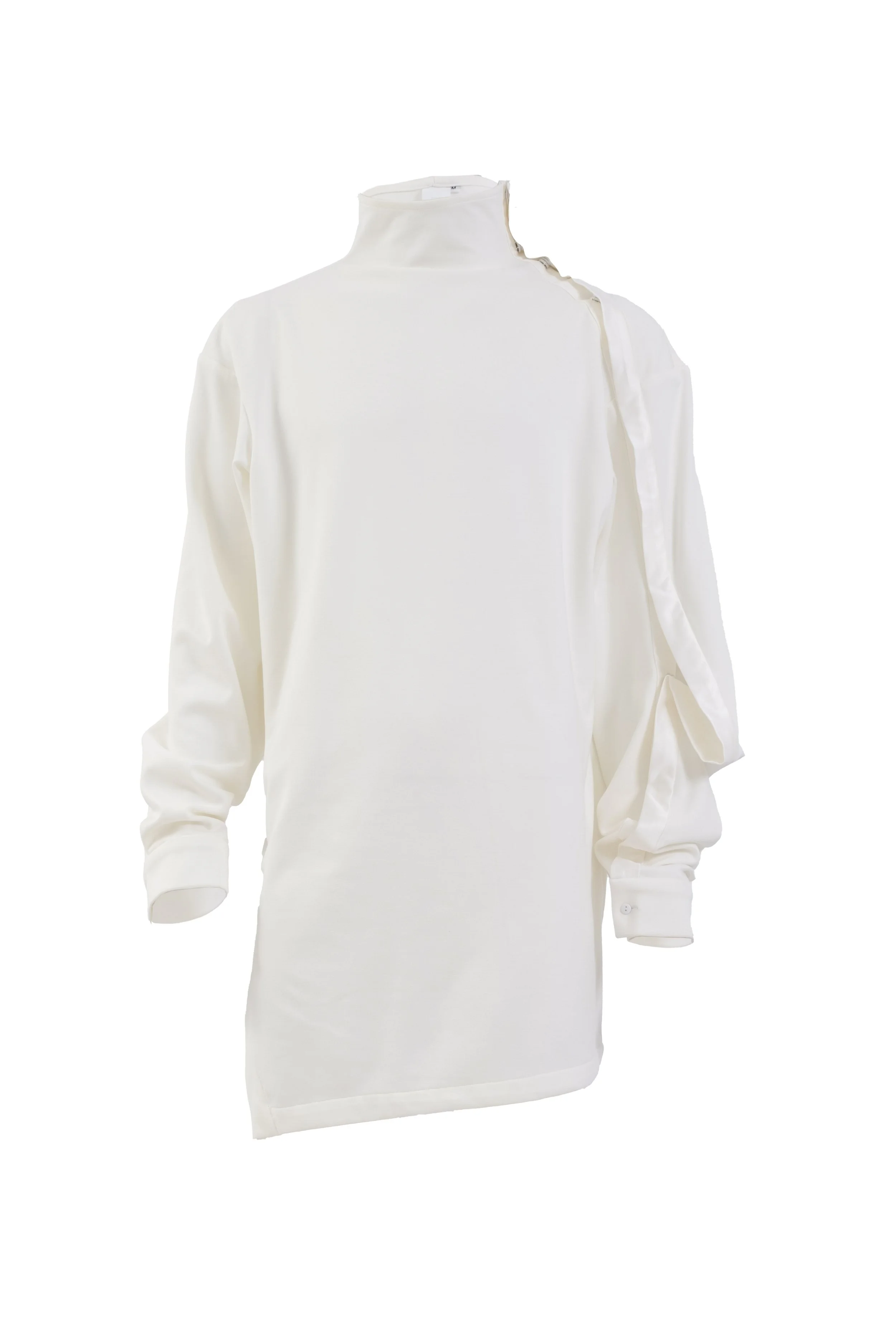 The "RAVEN" collection is inspired by the mythological raven—a mysterious creature that embodies wisdom, darkness, and the unknown across various cultures. Designer Kuo Wei explores the role of the raven in Taiwanese Rukai, Nordic, and Greek mythology, and reinterprets its imagery in this season’s collection. From the flow of feathers and skeletal structure to the moment of wings spreading, every detail carries deep cultural significance, guiding the viewer into a fashion dialogue woven with intelligence and mystery.